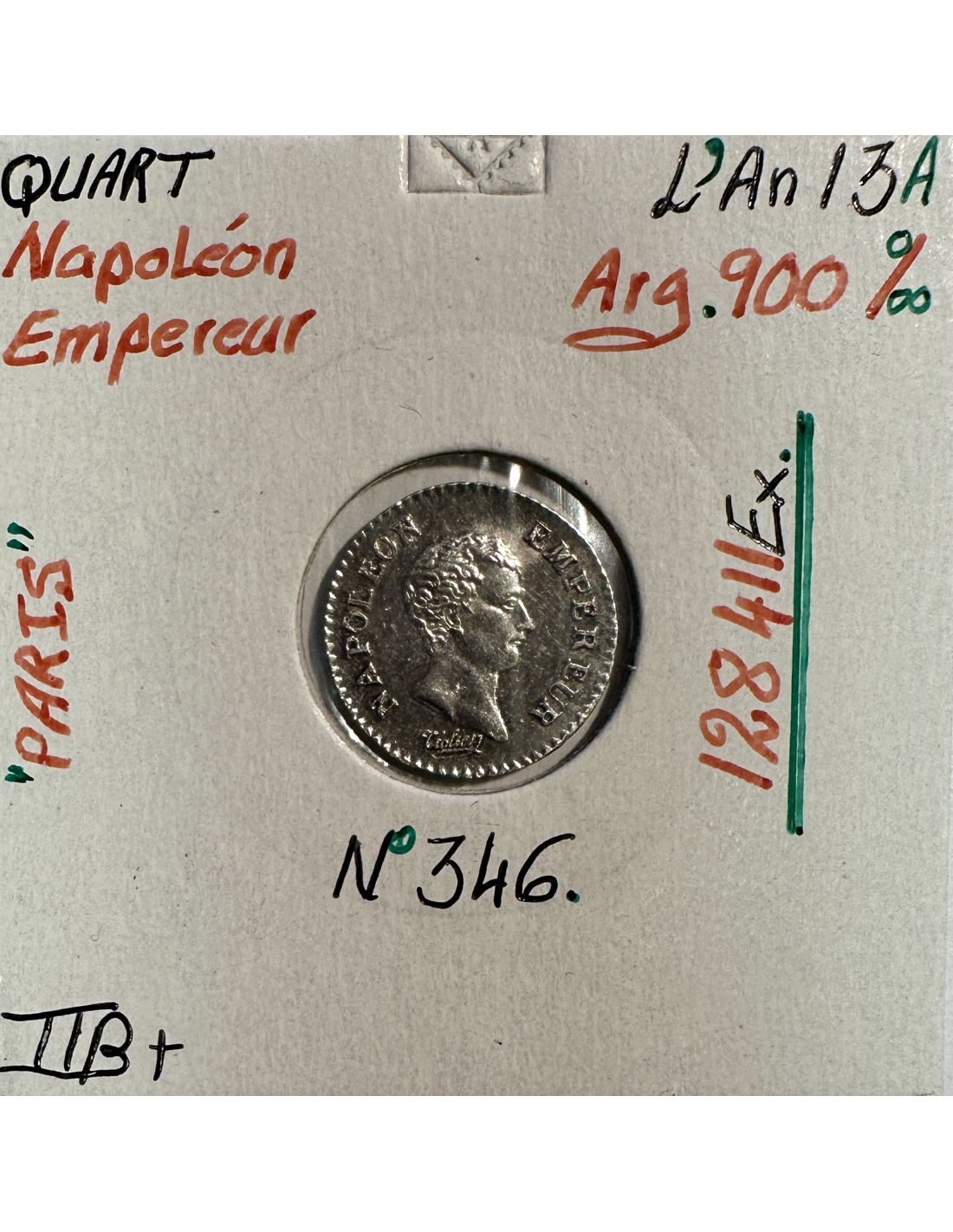 QUART DE FRANC NAPOLEON EMPEREUR (L'AN 13 A) Pièce de Monnaie en Argent // TTB