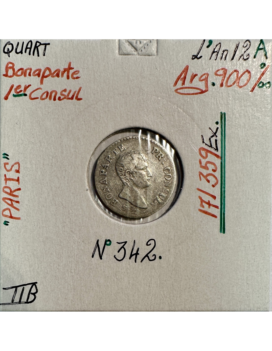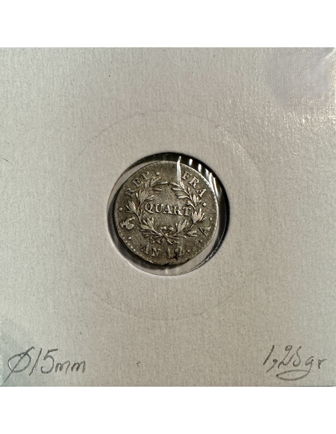 Pièce de monnaie de Un Quart de Franc l'An 12 A, Bonaparte 1er Consul, Atelier de Paris