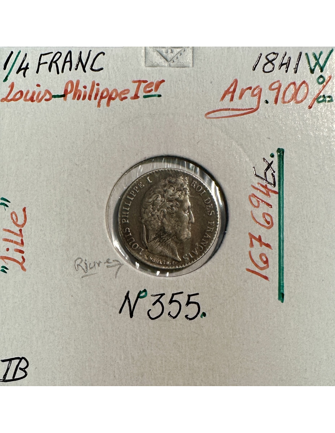 Pièce de monnaie en argent de 1/4 Franc 1819 B, Louis XVIII, Atelier de Rouen