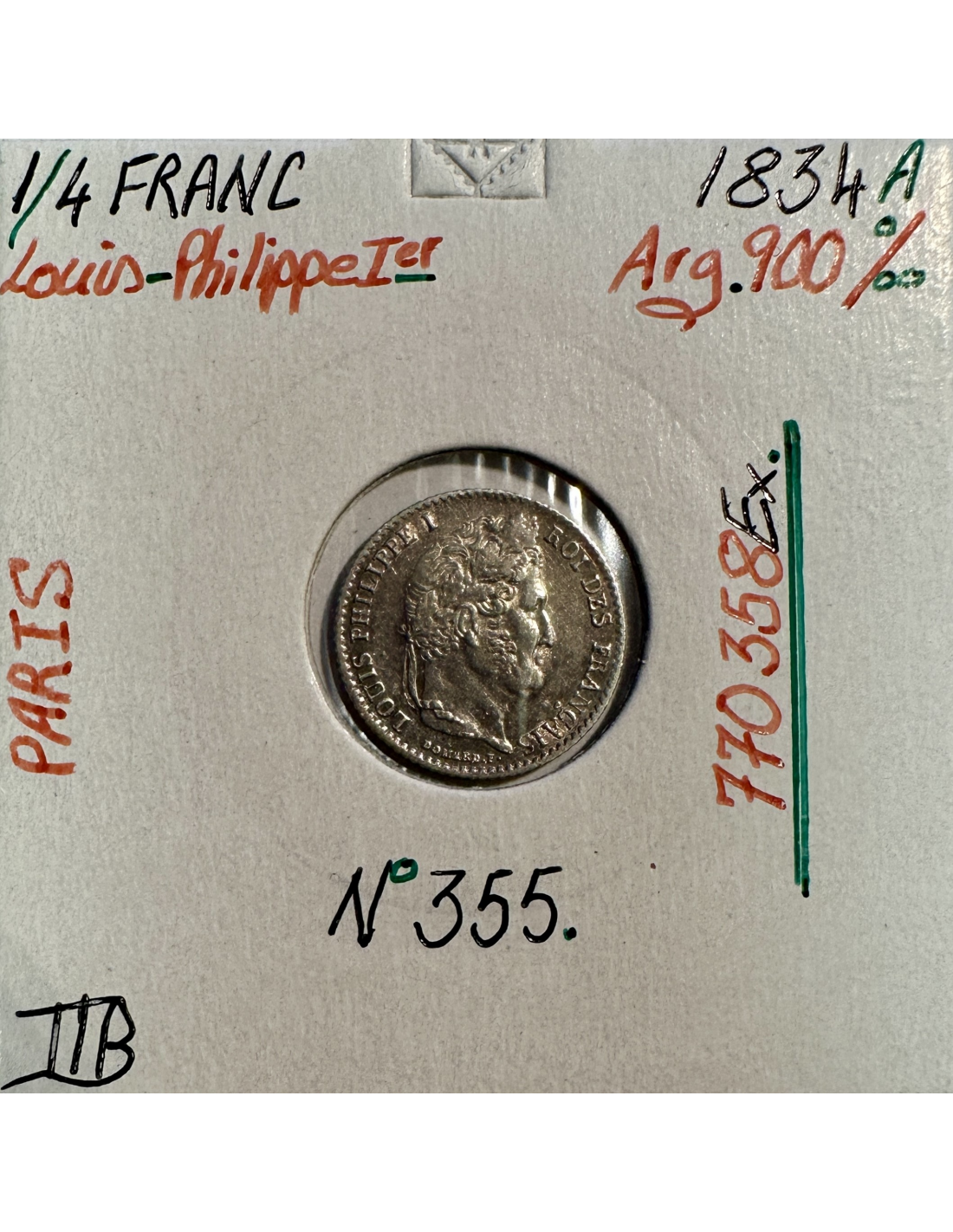 Pièce de monnaie de Un Quart de Franc l'An 12 A, Bonaparte 1er Consul, Atelier de Paris