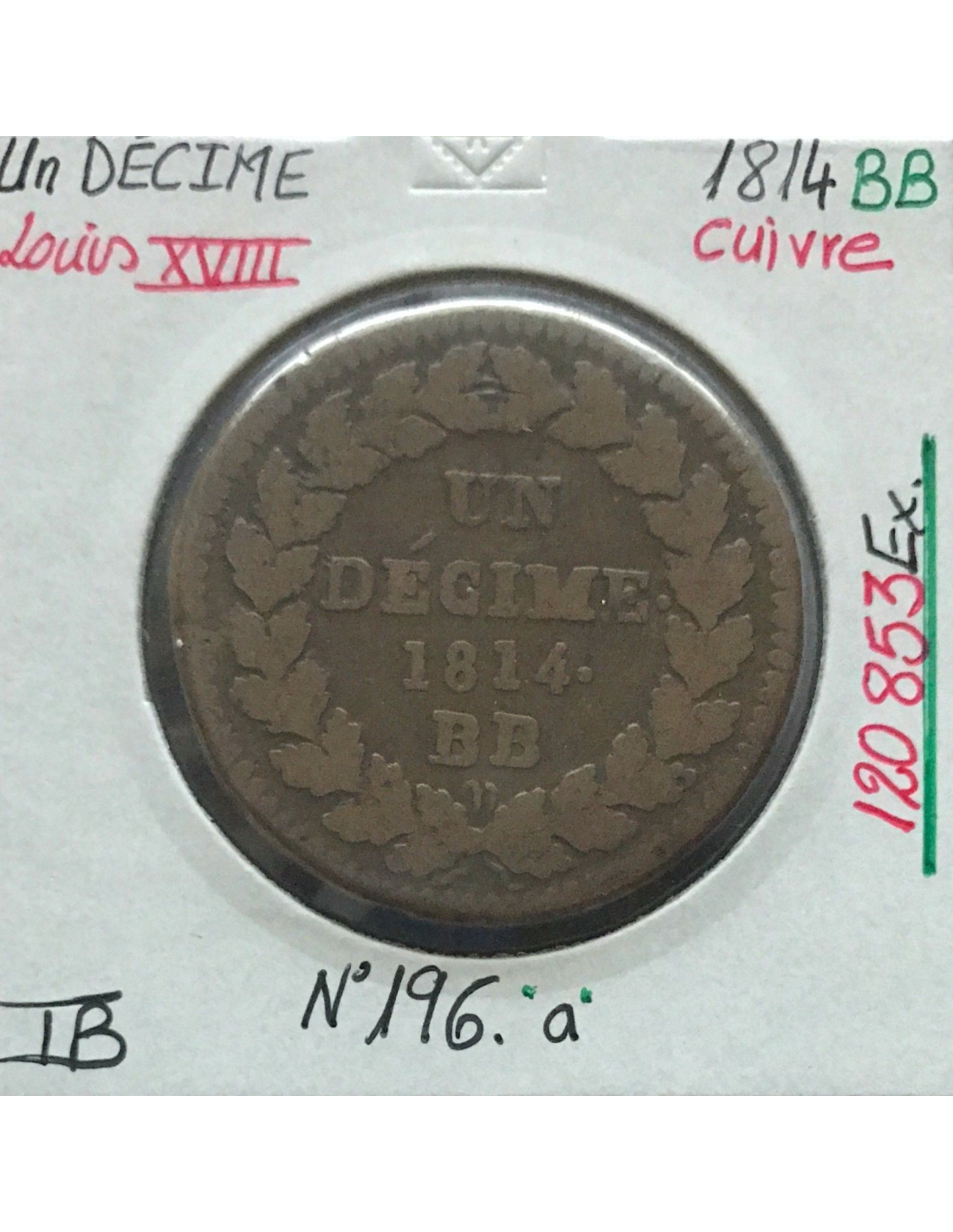Pièce de monnaie en cuivre de Un Décime Dupré, l'An 5 A