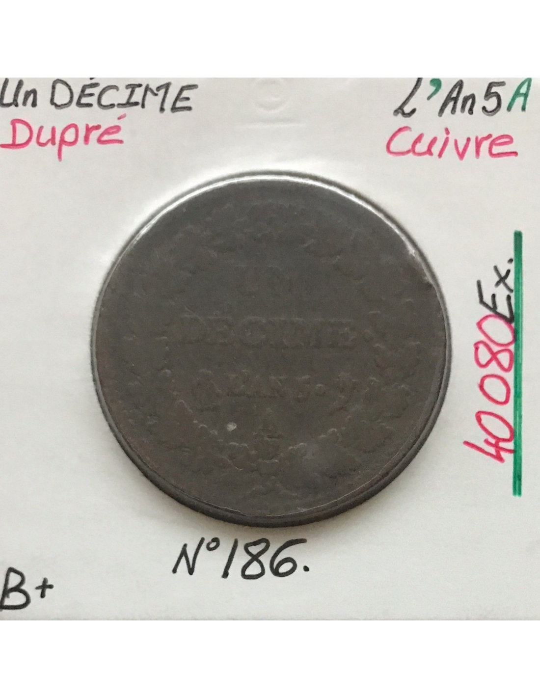 1 DECIME DUPRE - L'AN 5 A - Pièce de...
