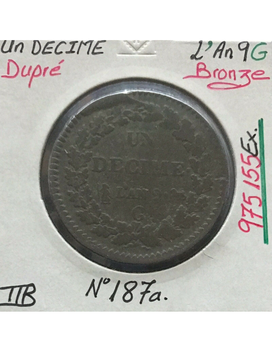 Pièce de monnaie en cuivre de Un Décime Dupré, l'An 5 R