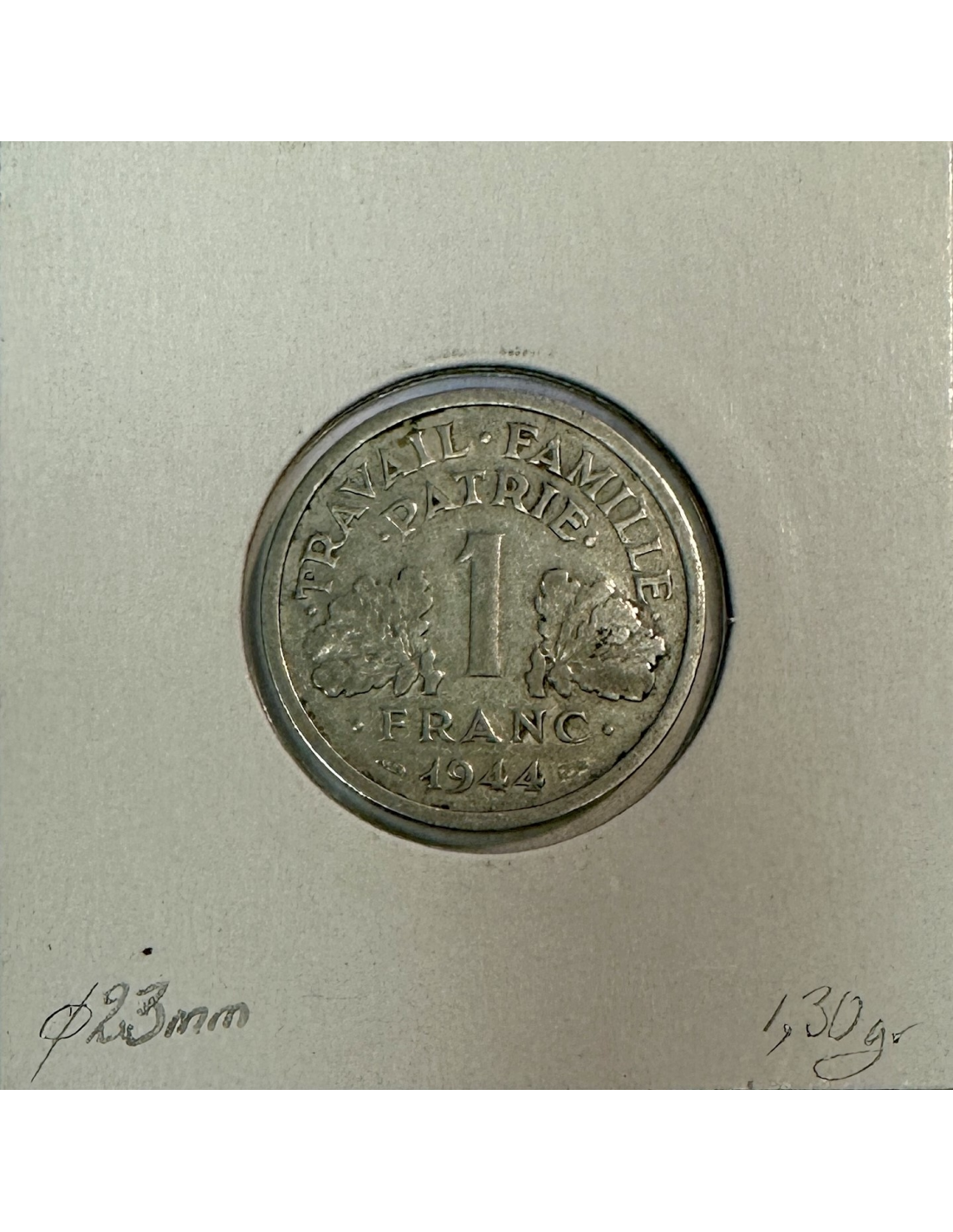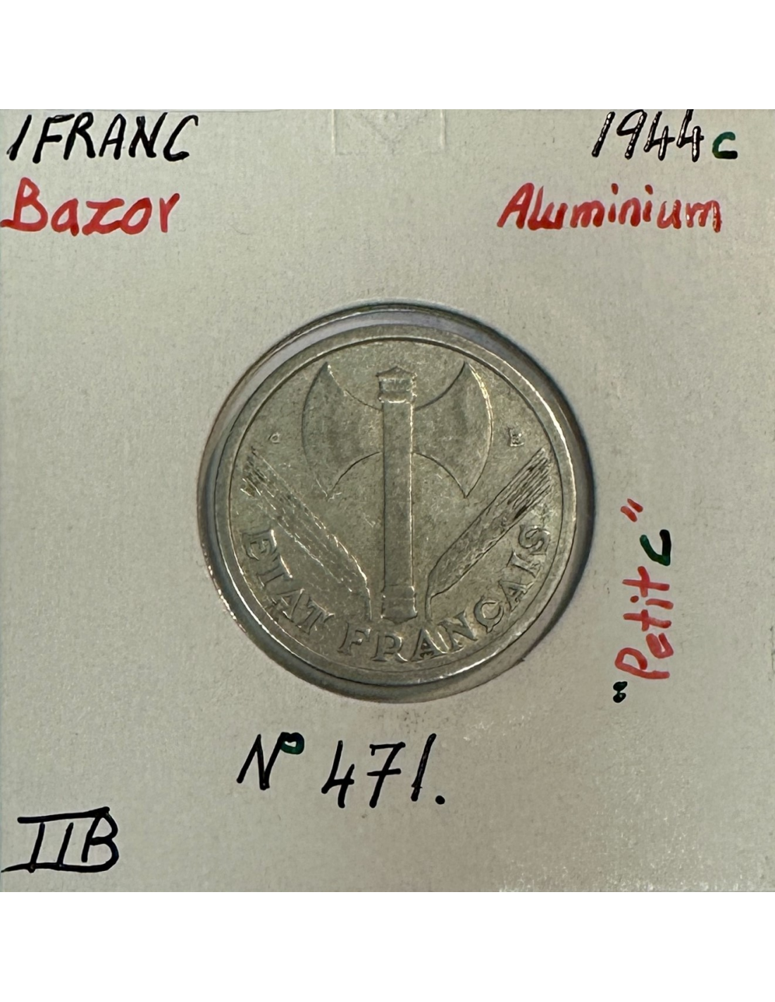 Pièce de monnaie en aluminium de 1 Franc Bazor 1944 avec petit c