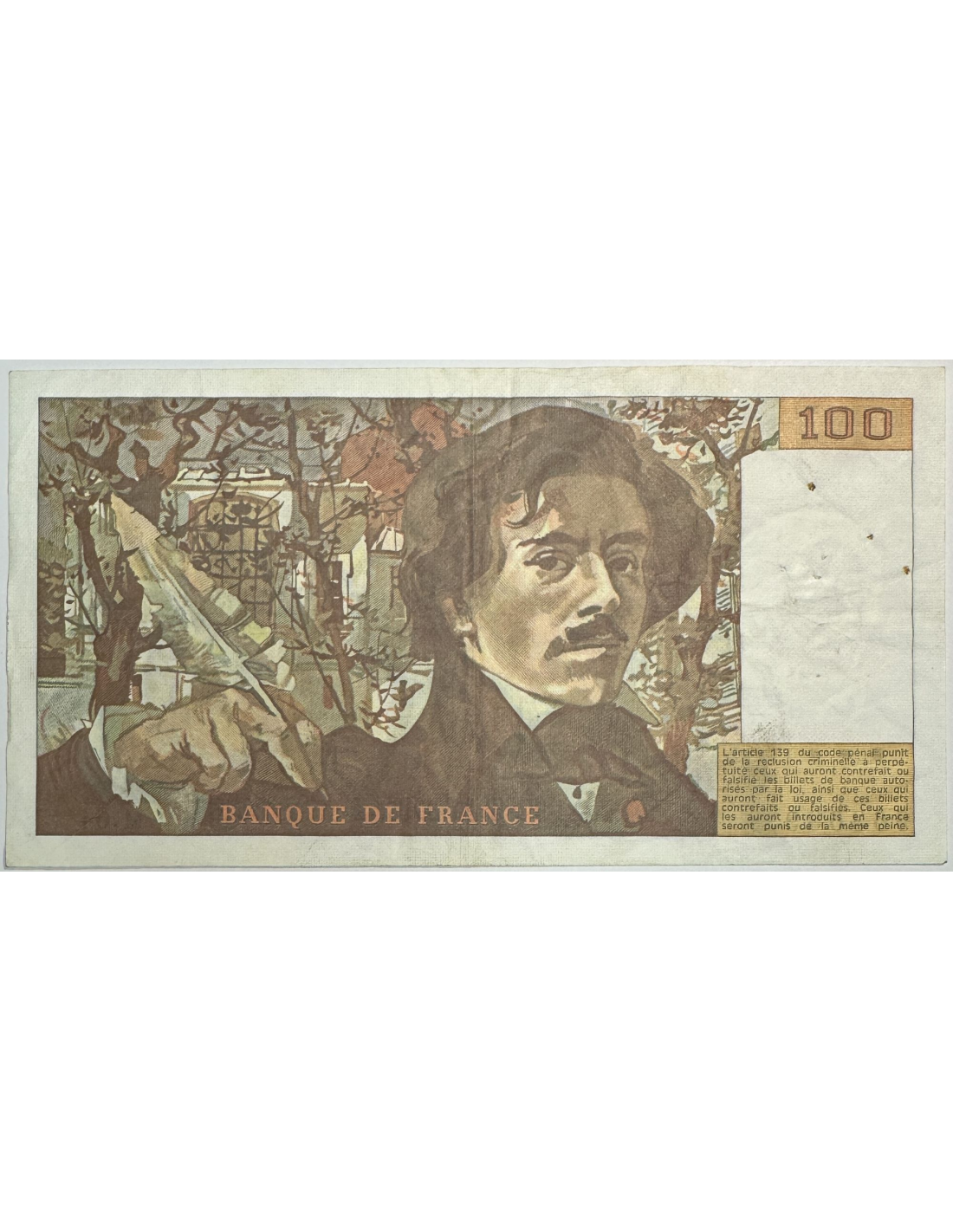 Billet de banque français de 100 Francs Delacroix 1982