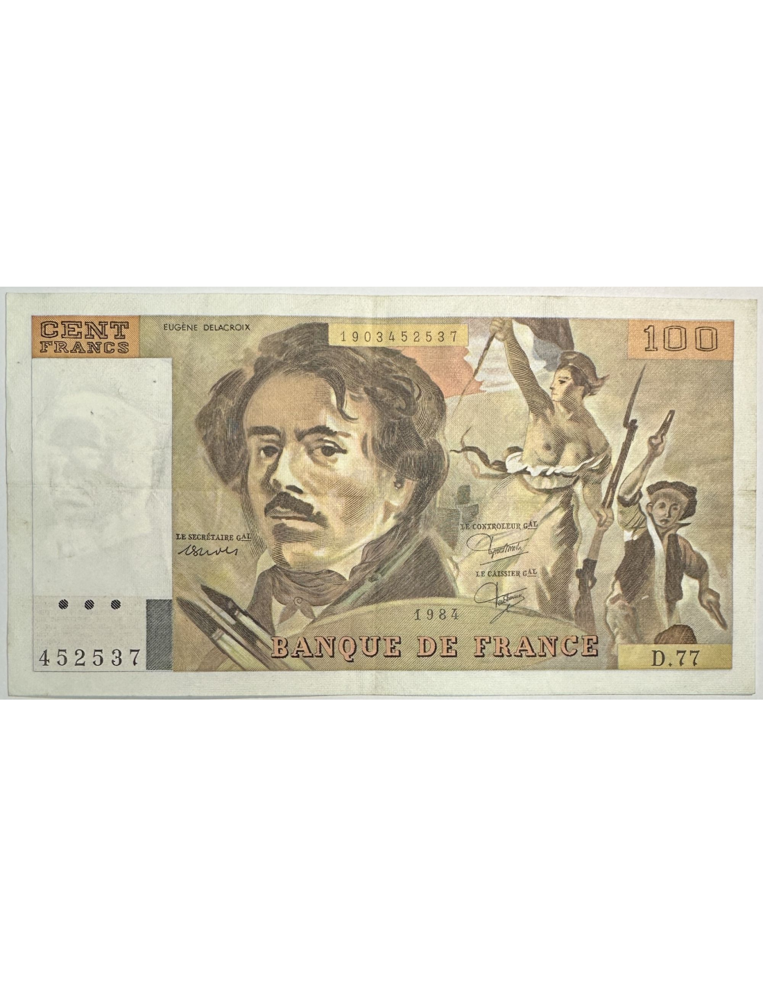 Billet de banque français de 100 Francs Eugène Delacroix 1995 en état SUP