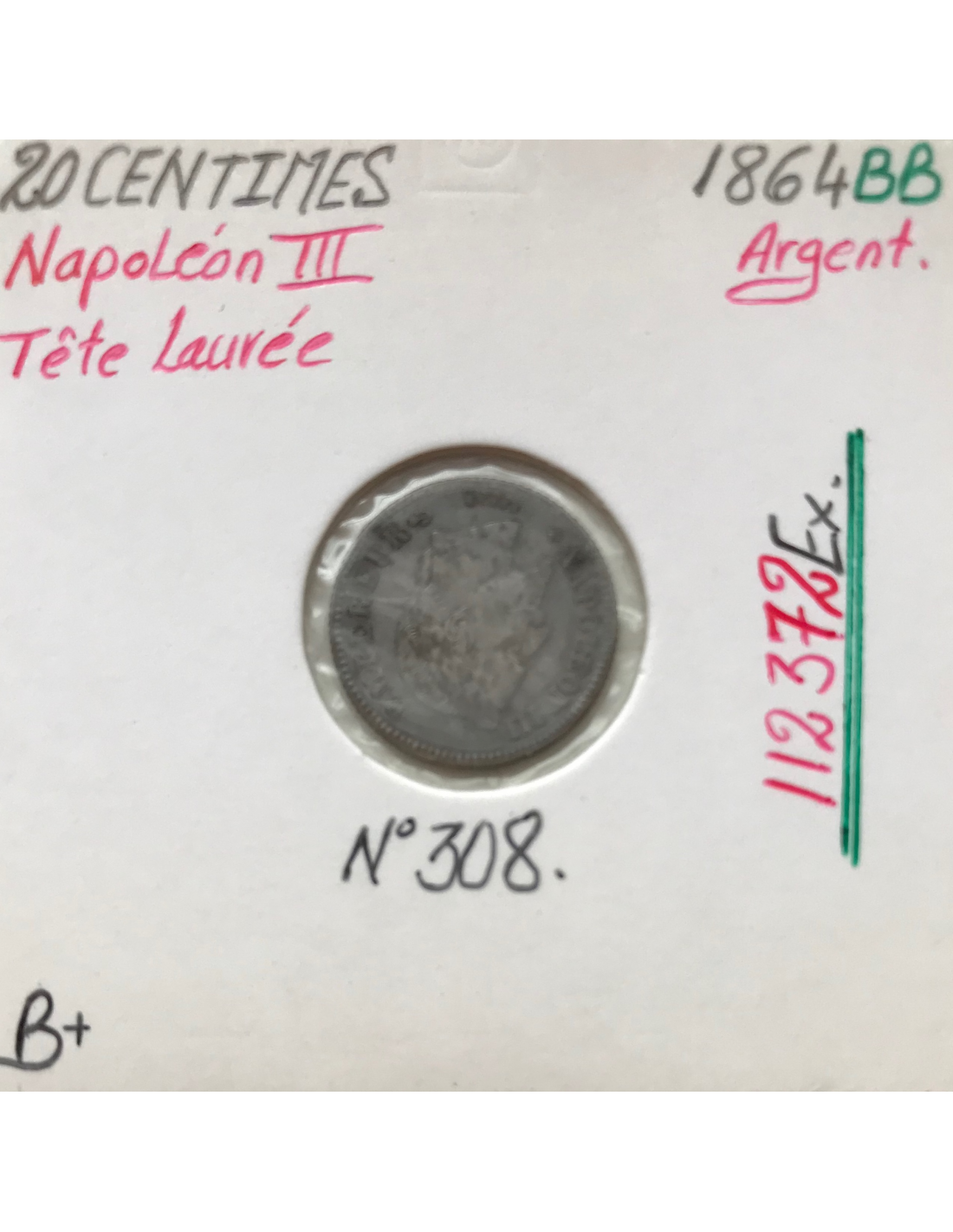 20 CENTIMES NAPOLEON III (1860A) Pièce de monnaie en Argent // Qualité : TTB