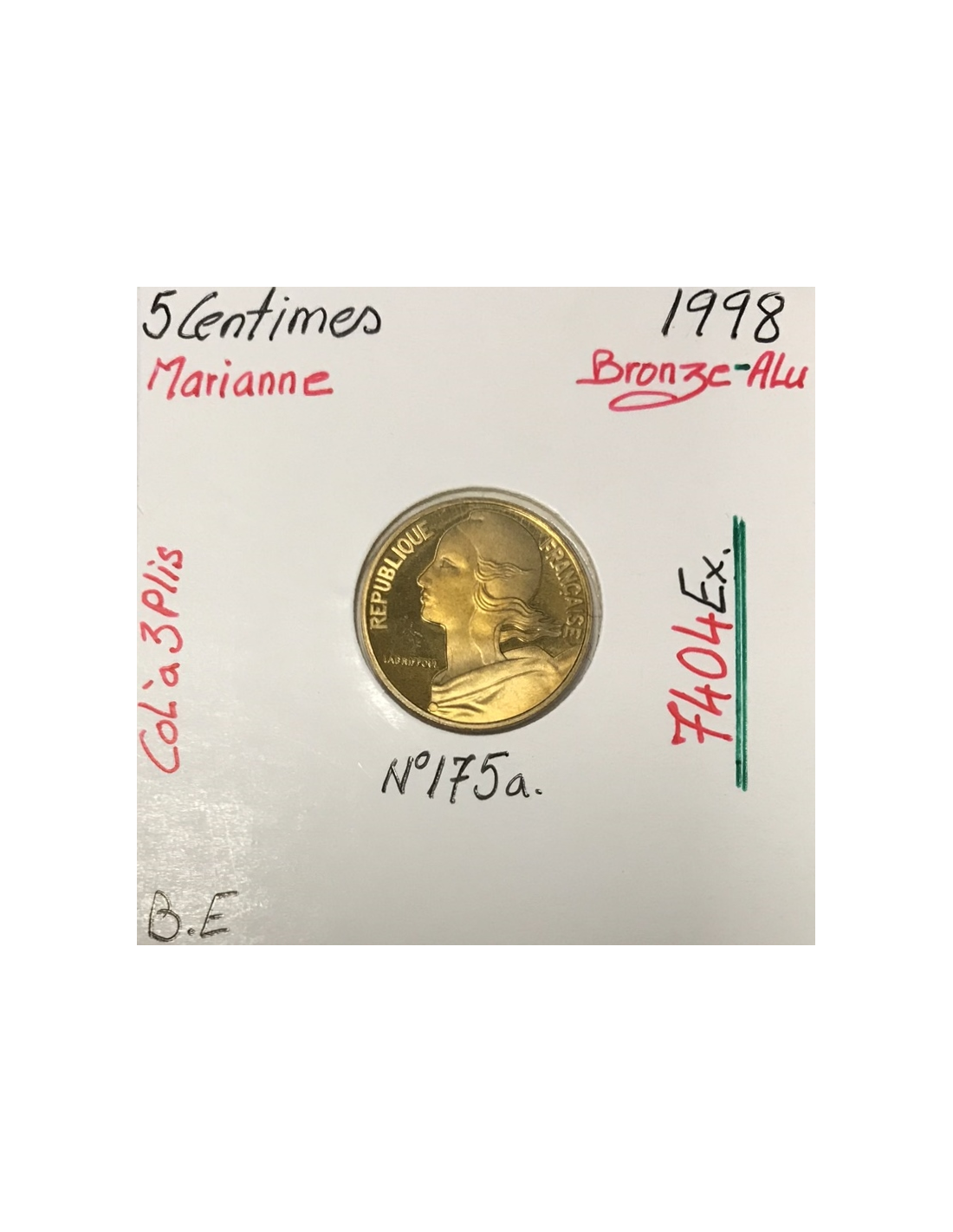 Pièce de monnaie de 5 Centimes Marianne 1995 en Bronze Aluminium