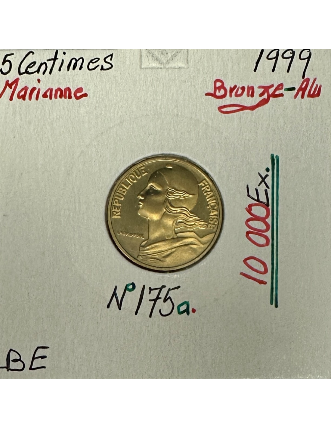 Pièce de monnaie de 5 Centimes Marianne 1995 en Bronze Aluminium