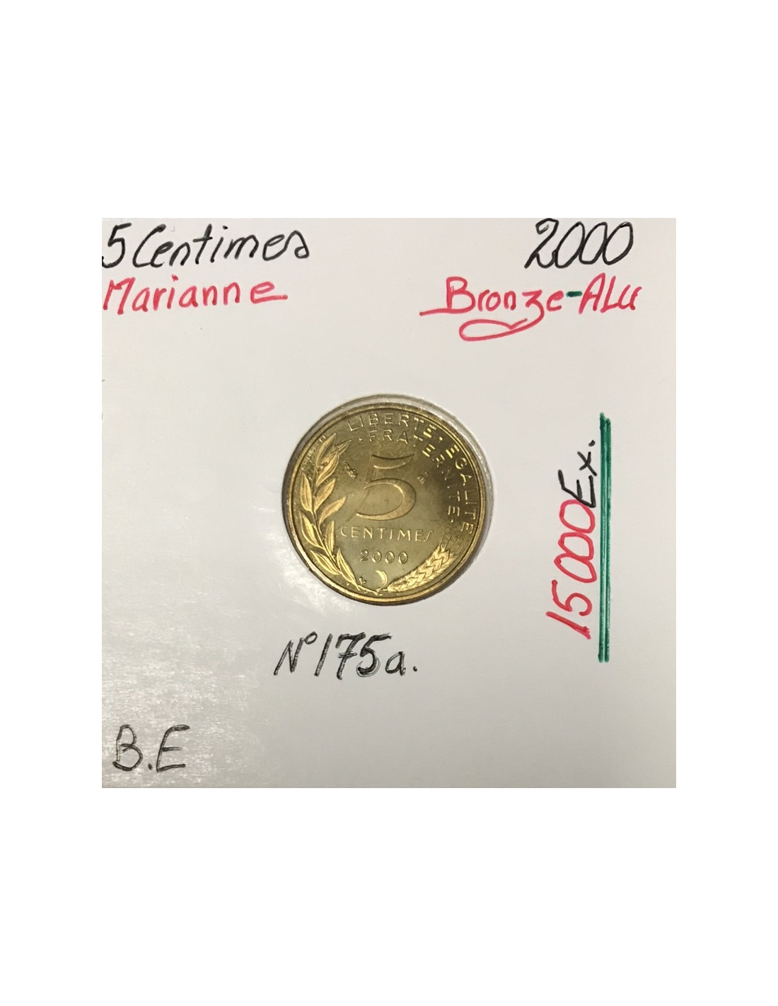 Pièce de monnaie de 5 Centimes Marianne 2000 en Bronze Aluminium