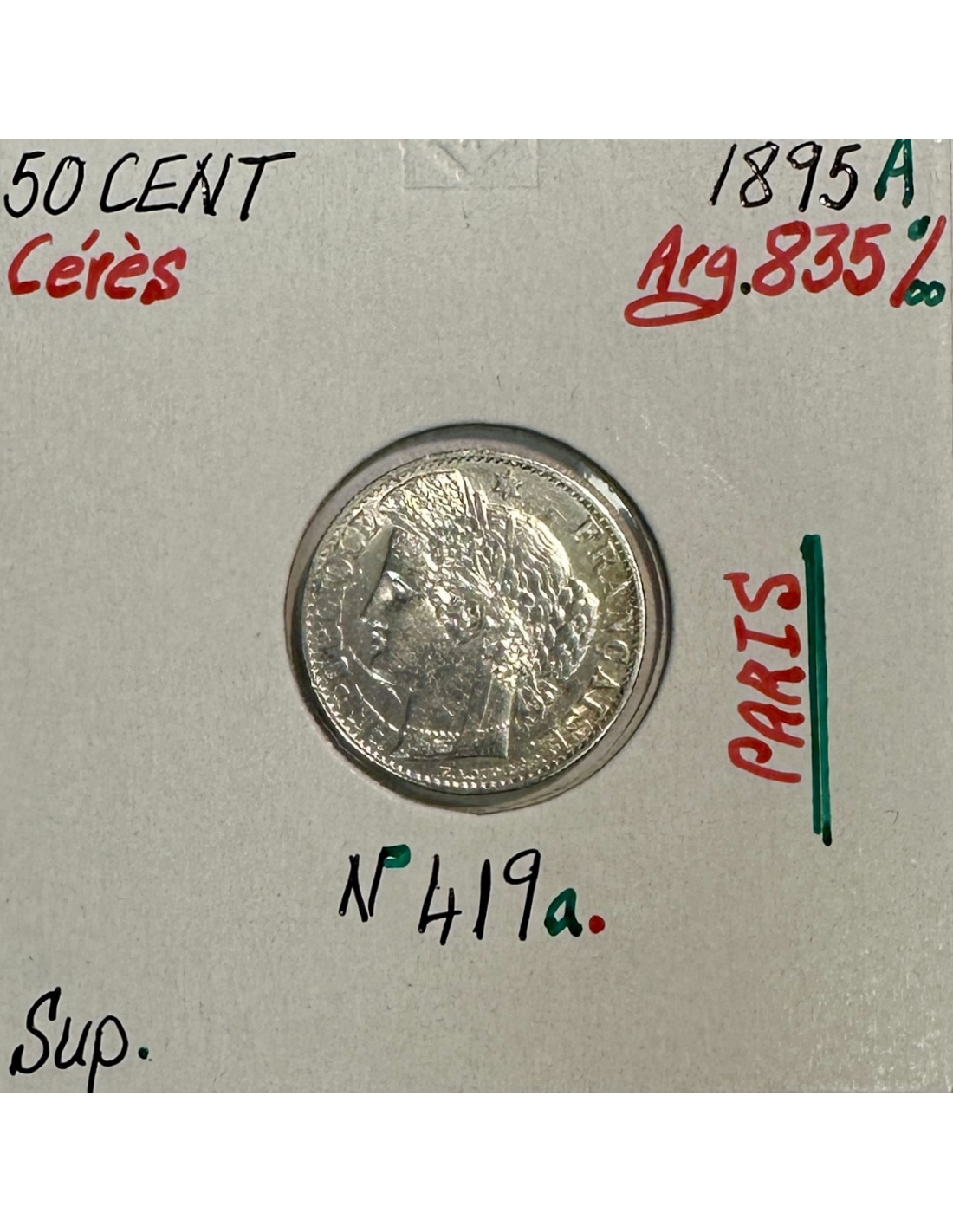 50 CENTIMES CERES - 1895 A - Pièce de monnaie en Argent // SUP