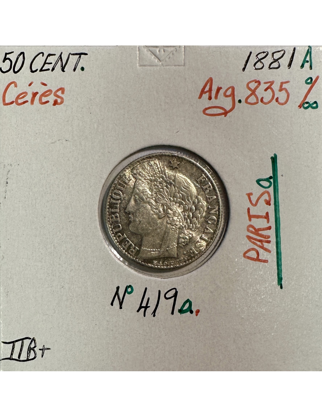 50 CENTIMES CERES - 1881A - Pièce de monnaie en Argent // TTB