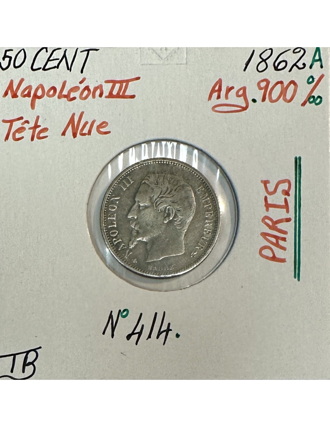50 CENTIMES NAPOLEON III - 1857 A - Pièce de monnaie en Argent // TTB