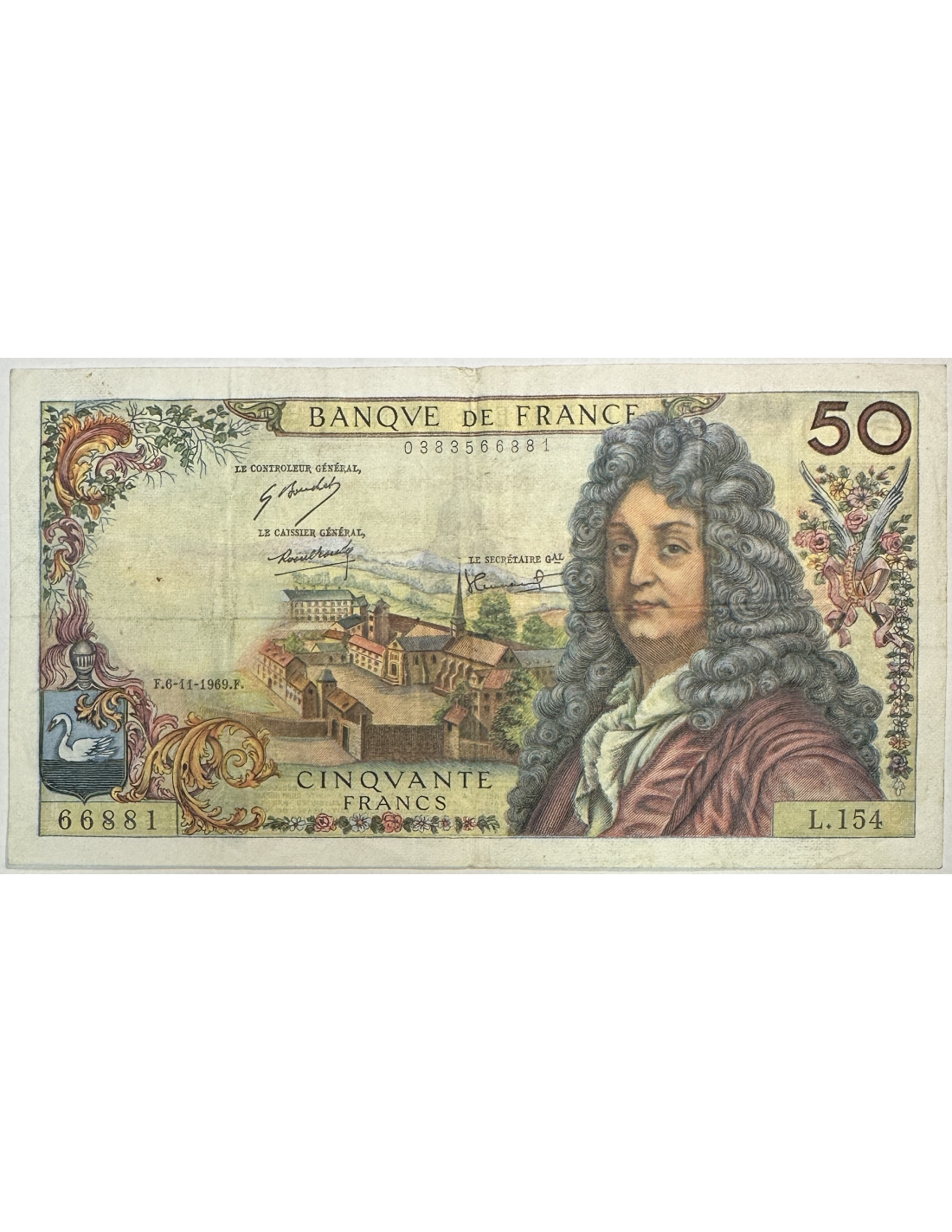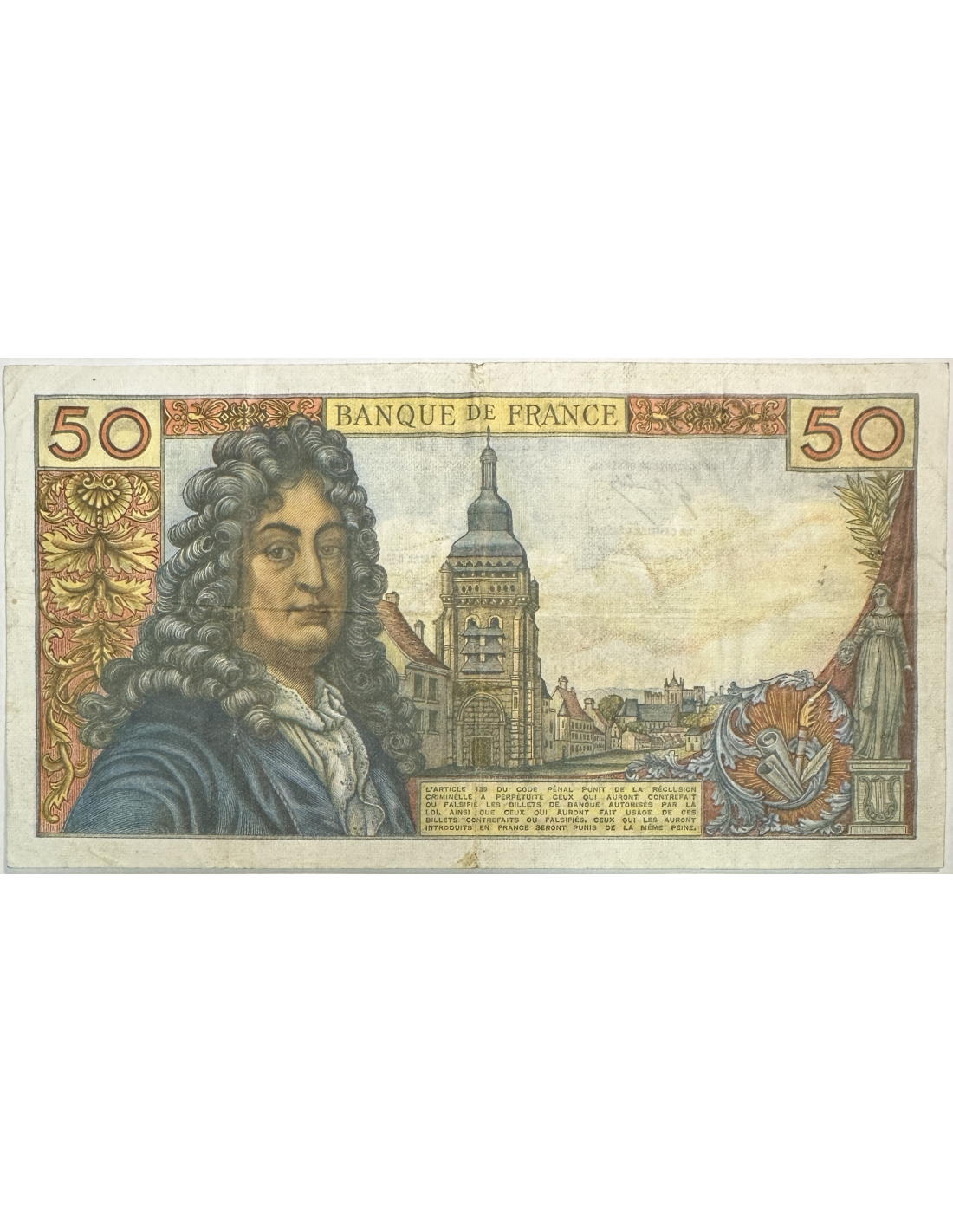 Billet de banque français de 50 Francs Jean Racine du 6 Novembre 1969 représentant le site de Port-Royal des Champs