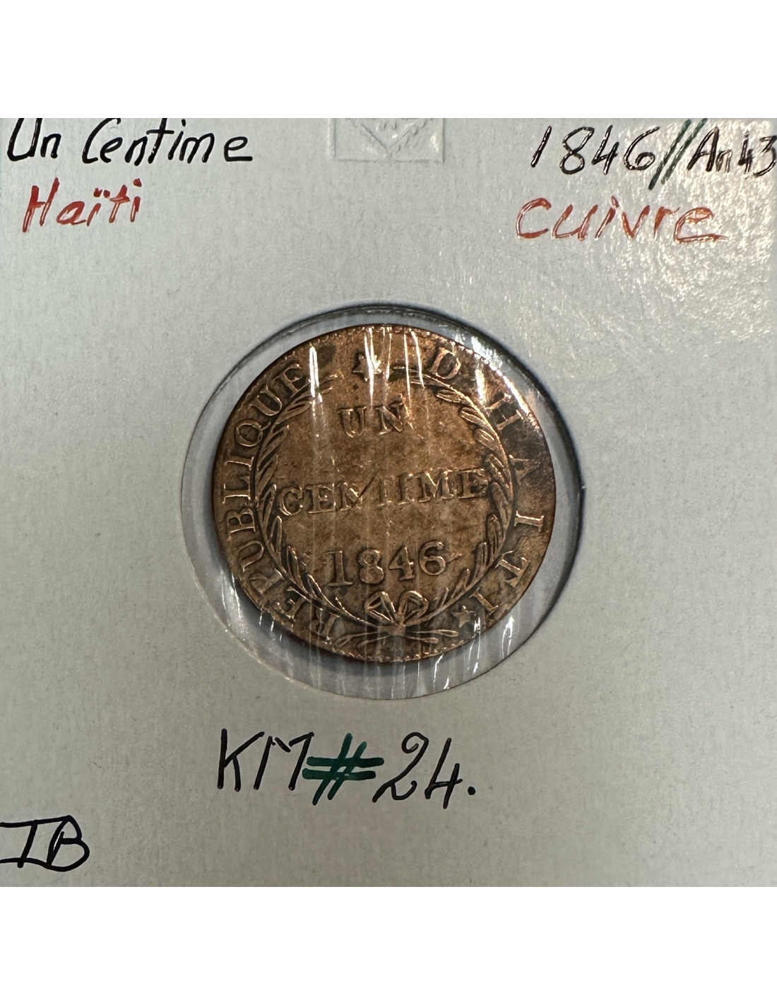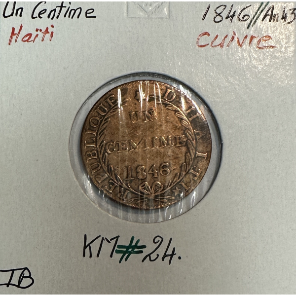Haïti de 1 Centime 1846, l'An 43