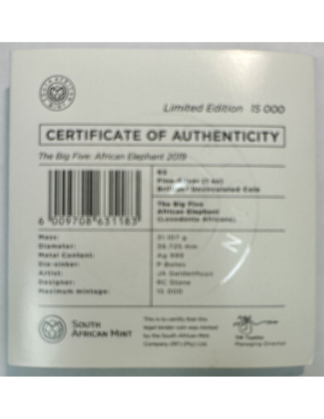 Pièce de monnaie en argent, de 5 Cent 2002 de l'Afrique du Sud, en qualité Belle Epreuve dans un coffret, représentant un éléphant