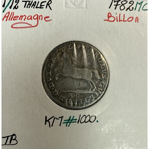 ALLEMAGNE - 1/12 THALER 1782 MC - Pièce de Monnaie en Billon // Qualité : TB