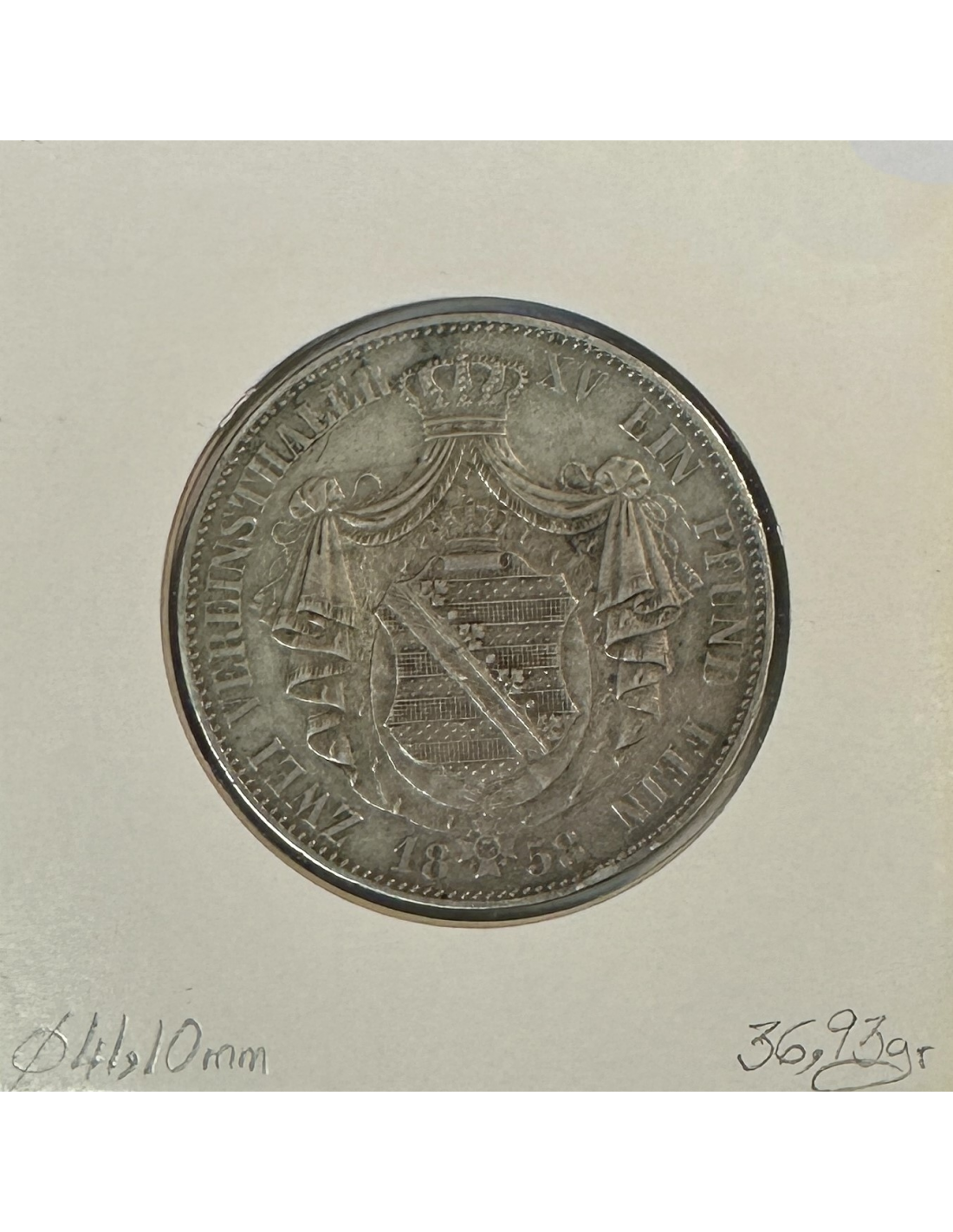 ALLEMAGNE (SAXE) 2 THALER (3-1/2 GULDEN) - 1858 F - Monnaie en Argent // TB