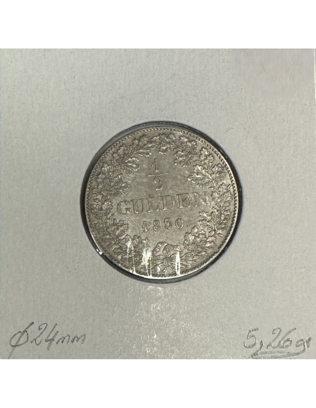 ALLEMAGNE - 1/2 GULDEN - 1850 - Pièce de Monnaie en Argent // Qualité : TB