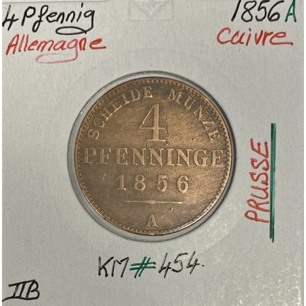 ALLEMAGNE PRUSSE - 4 PFENNIG - 1856A - Monnaie en Cuivre // Qualité : TTB