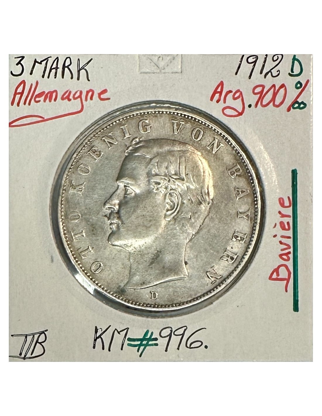 Pièce de monnaie en Argent de l'Allemagne, Wurttemberg 2 Gulden 1848