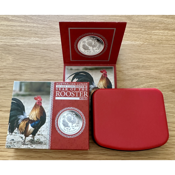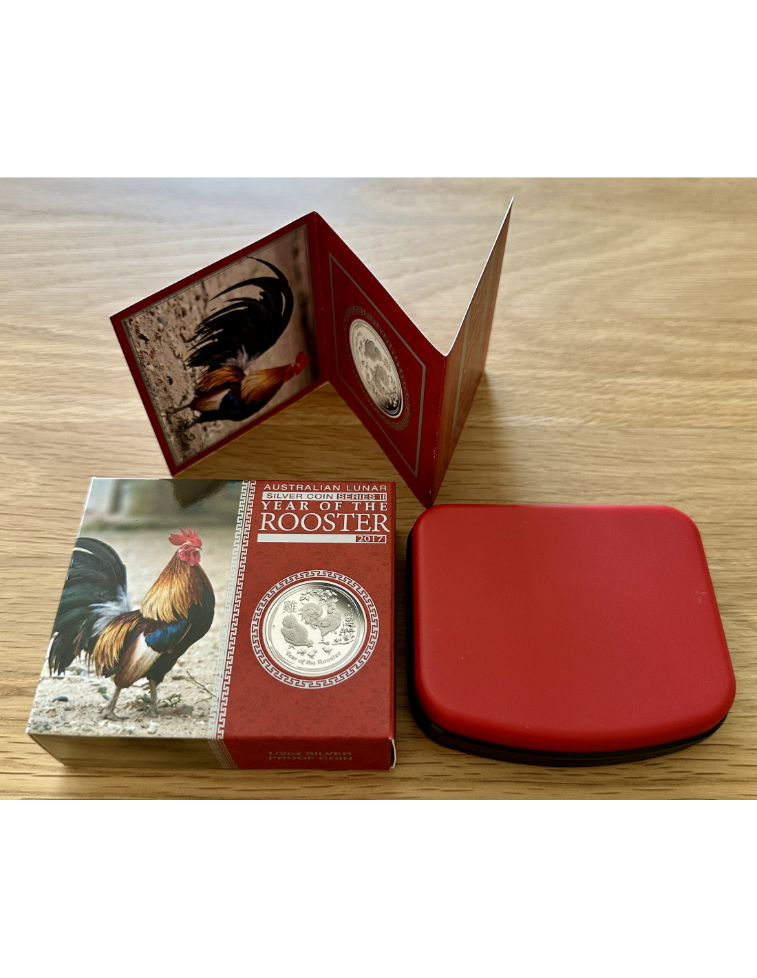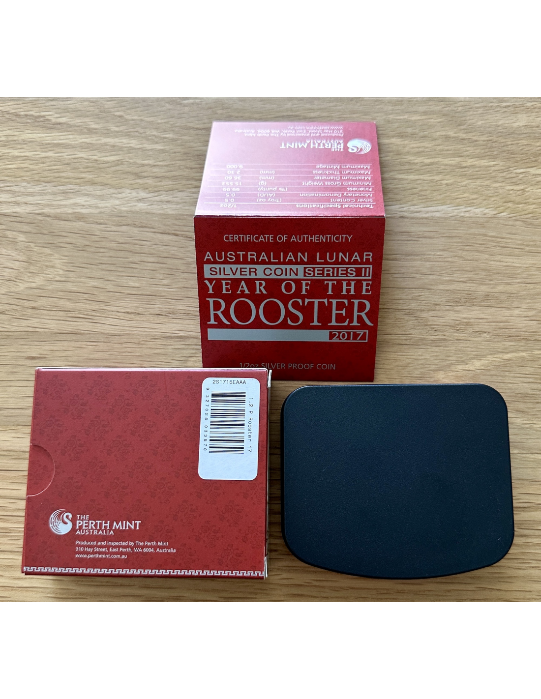 Pièce de Monnaie Australienne de 1/2 Dollar 2017 en Argent qualité Proof en coffret, commémorant le calendrier lunaire australien (Séries II) coq, à l'effigie de la Reine Elisabeth II d'Angleterre