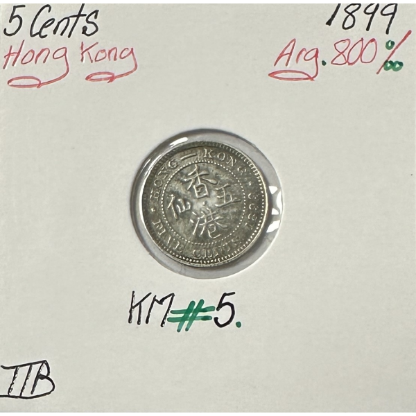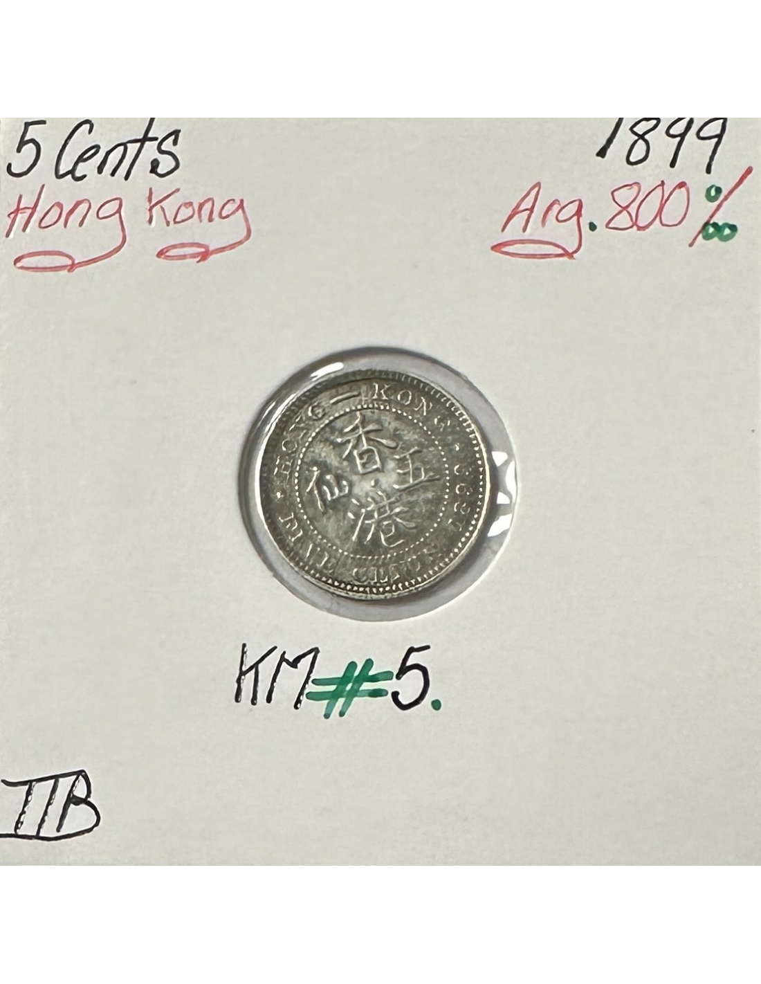 HONG KONG - 5 CENTS 1899 - Pièce de Monnaie en ARGENT // Qualité : TTB
