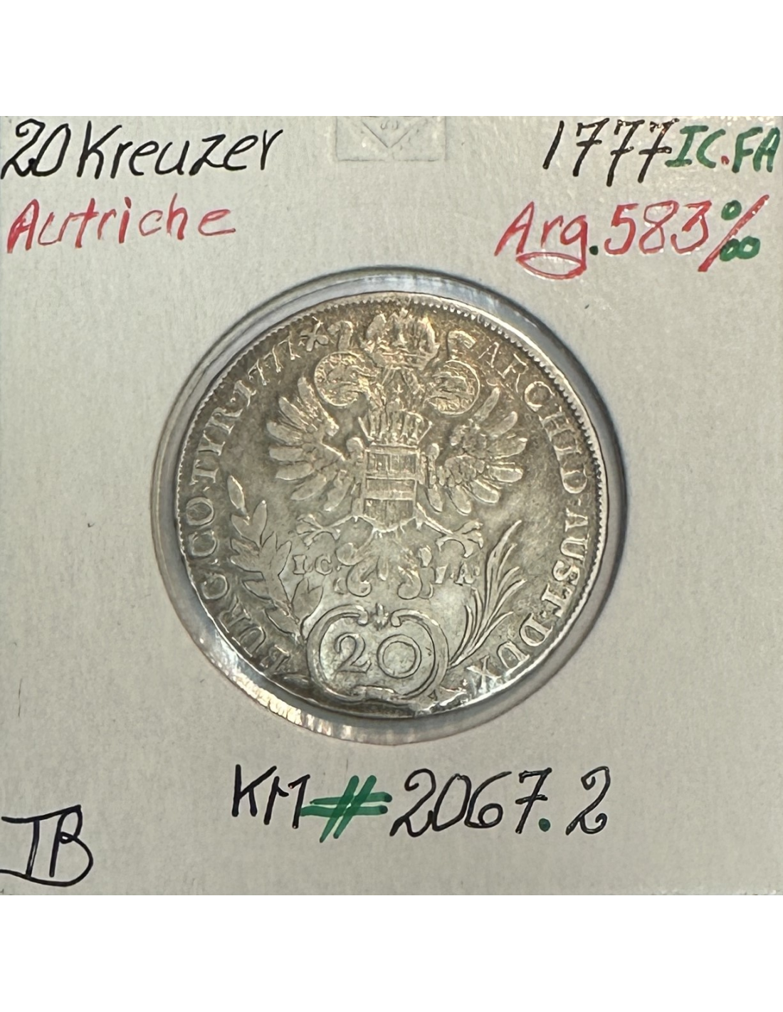 AUTRICHE - 20 KREUZER 1777 - Pièce de Monnaie en Argent // Qualité : TB