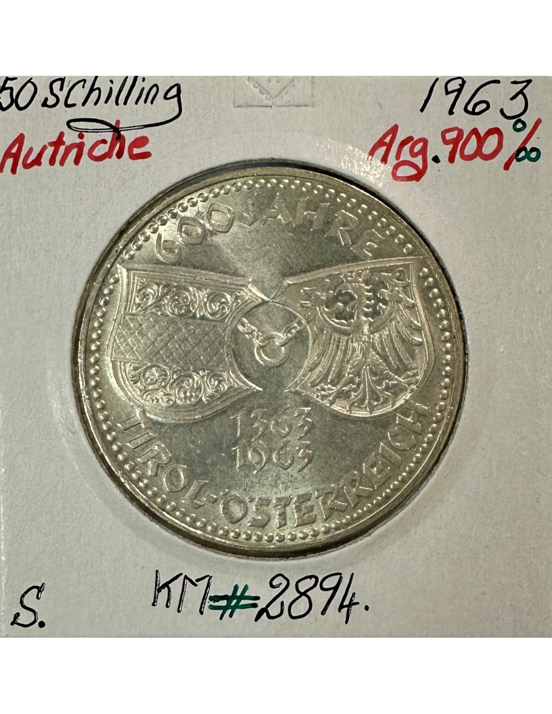 Pièce de monnaie d'Autriche en Argent de 50 Schilling 1963