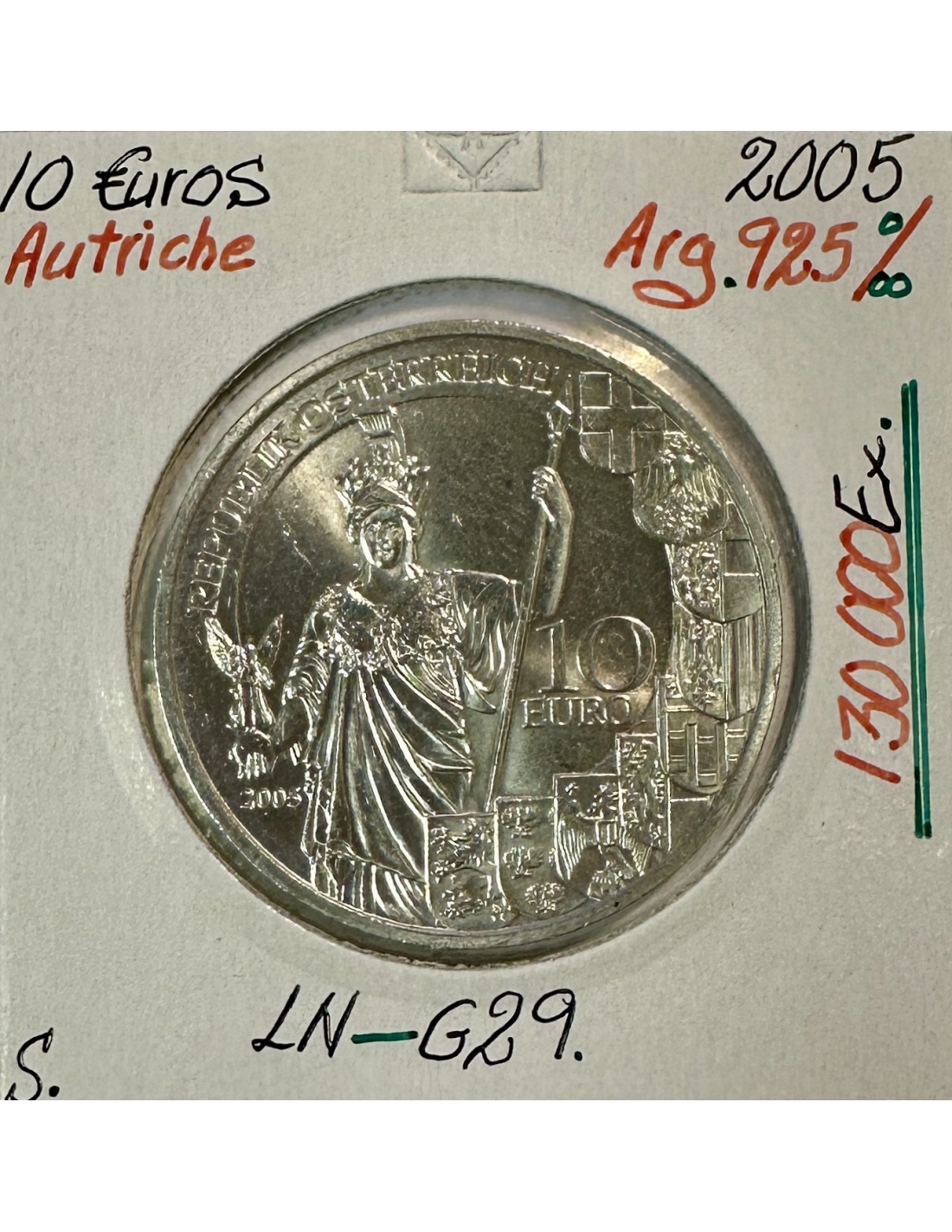 Pièce de monnaie autrichienne en argent de 10 Euro 2007