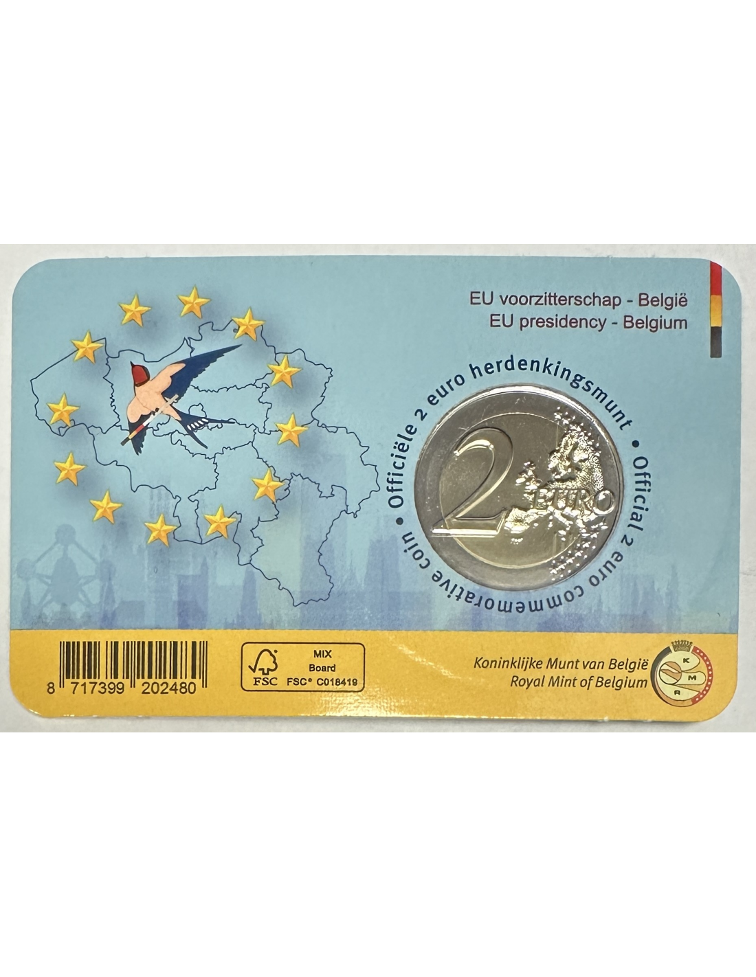 Pièce de 2 Euro 2015 commémorative de la Belgique, présentée en Coin card et représentant l'année européenne du développement