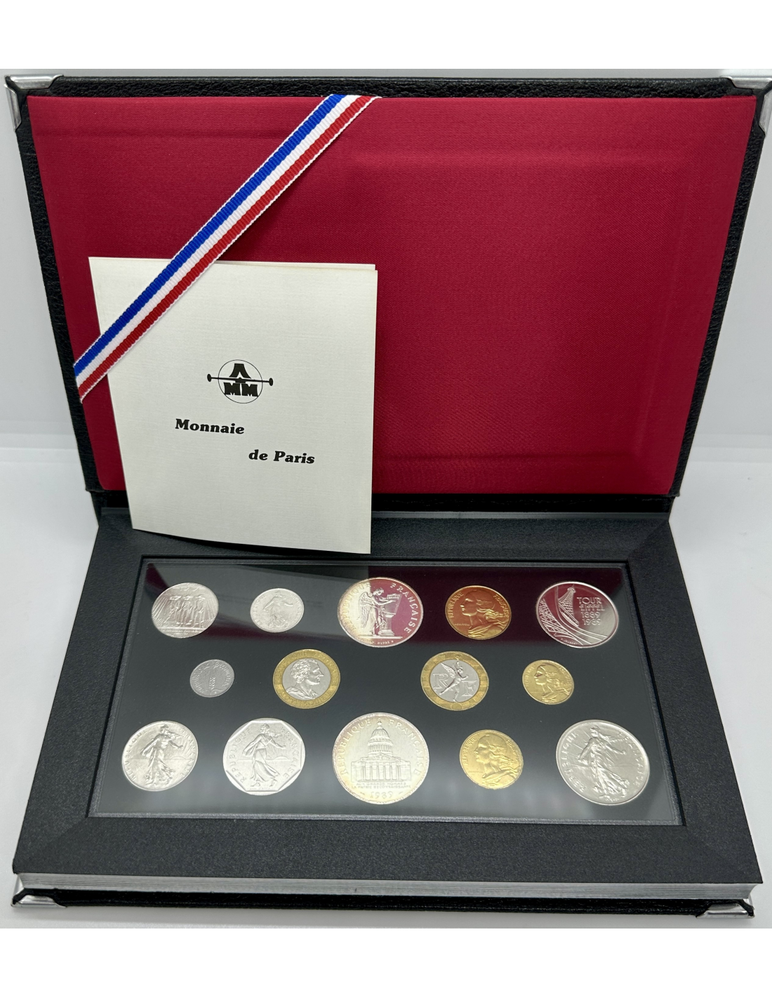 Série des 14 Pièces en Franc 1989 de la France en Coffret Belle Epreuve, neuf, émis par la Monnaie de Paris