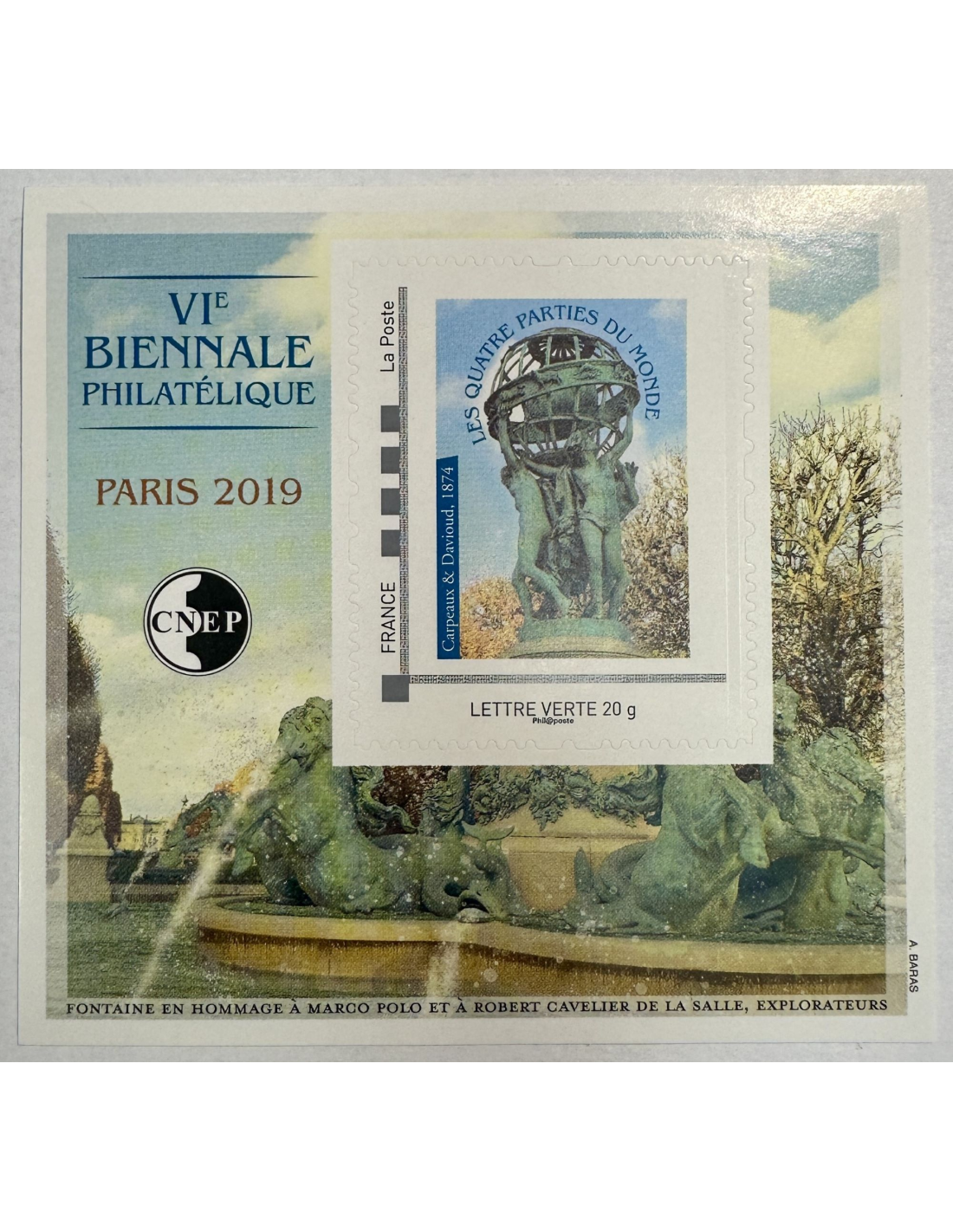 Bloc CNEP N°80 à l'occasion de la VIème Biennale Philatélique Paris 2019, représentant "Les quatre parties du Monde"