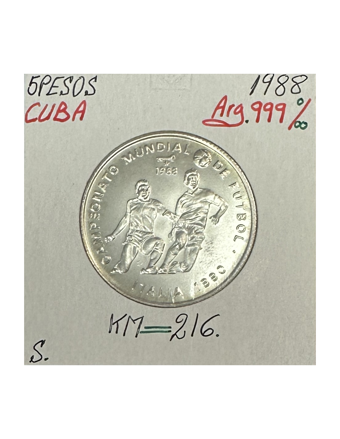 Pièce de monnaie en argent de 5 Pesos 1988, Mondial de Football, Italia 1990