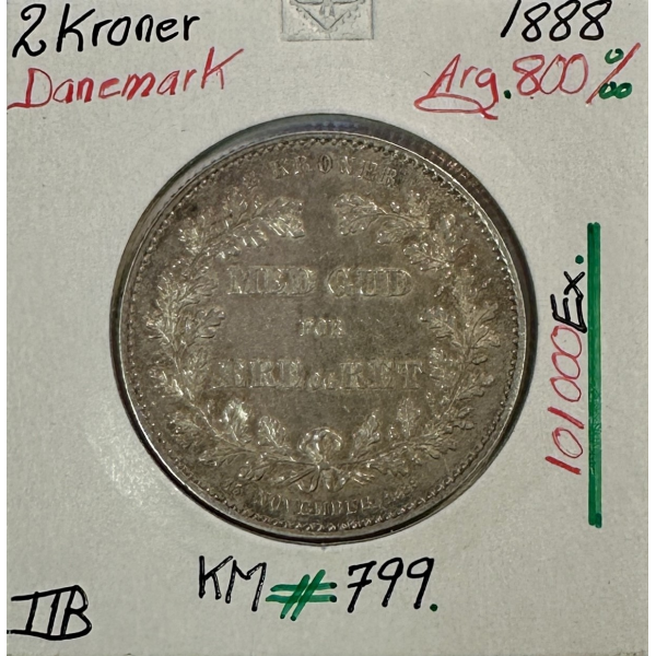 DANEMARK - 2 KRONER 1888 - Pièce de Monnaie en Argent // TTB