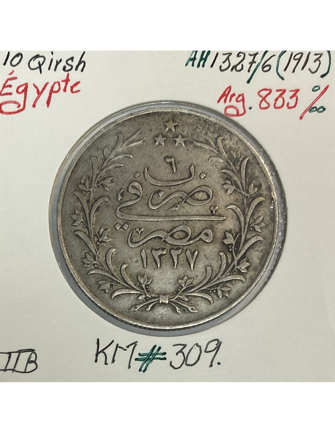 EGYPTE - 10 QIRSH 1913 (AH 1327/6) - Pièce de Monnaie en Argent // Qualité : TTB