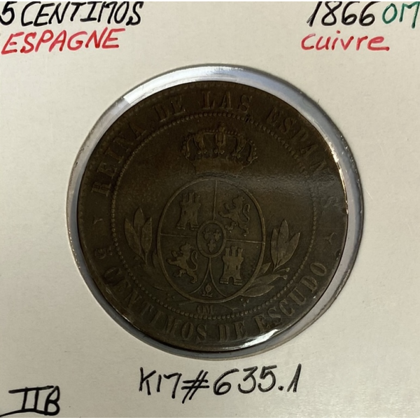 ESPAGNE - 1 PESETAS 1869 SN-M - Pièce de Monnaie en Argent // Qualité : B