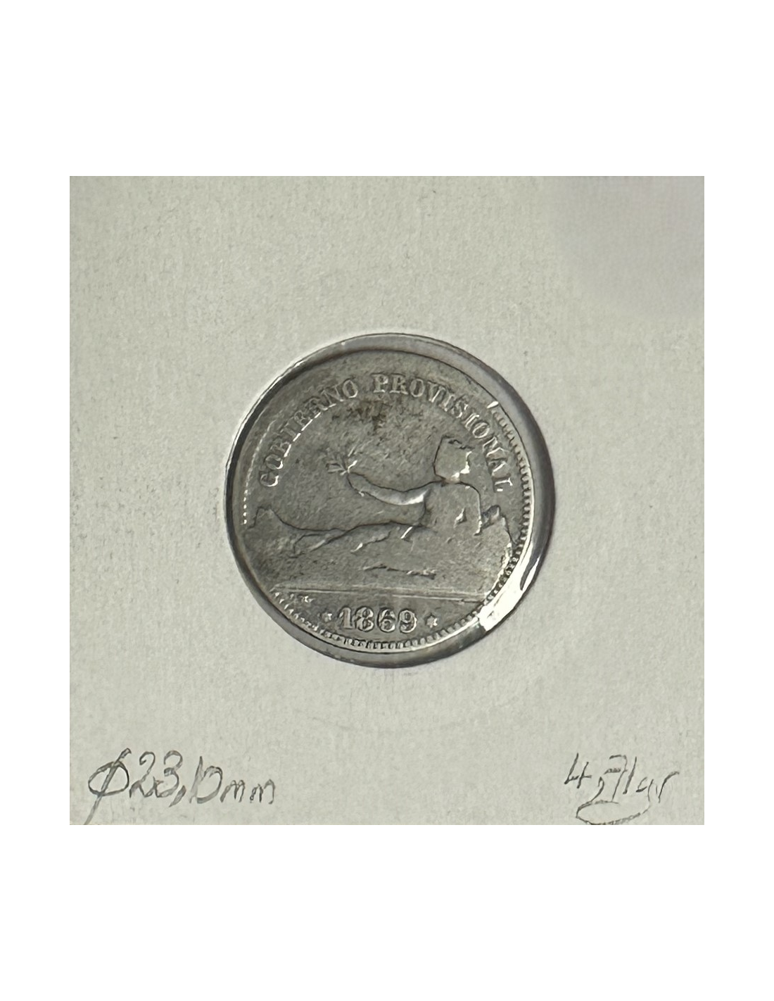 Pièce de monnaie espagnole en argent de 2 Reales 1860