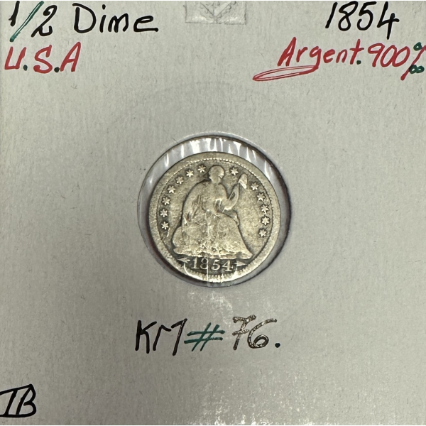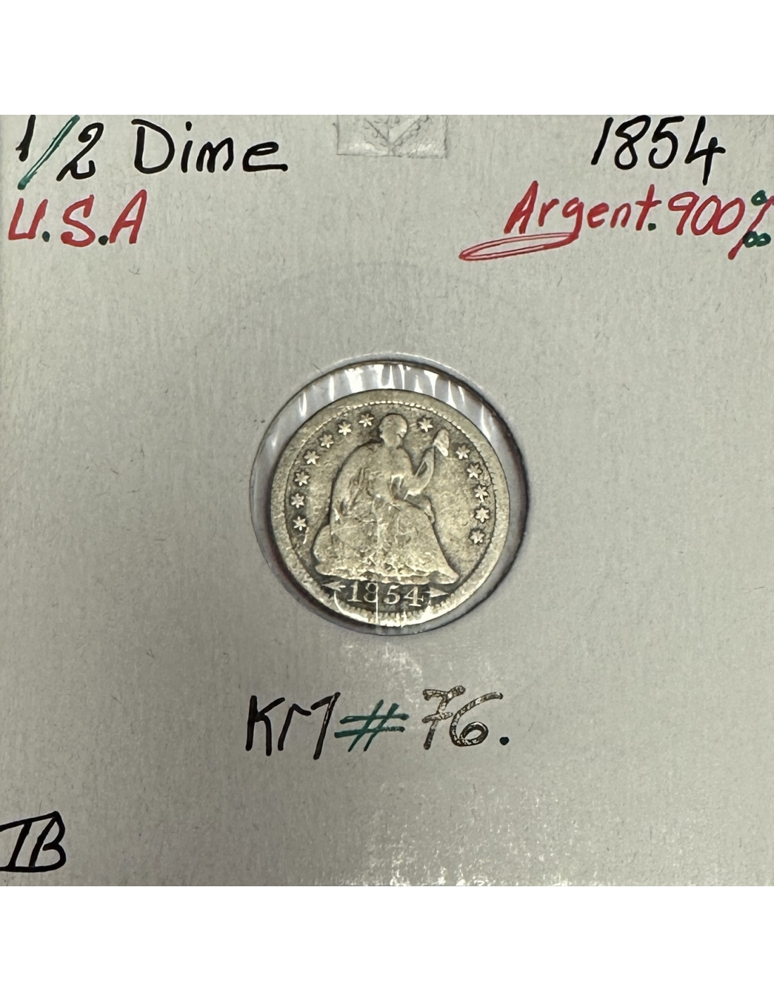 ETATS-UNIS - 1/2 DIME 1854 - Pièce de Monnaie en Argent // Qualité : TB