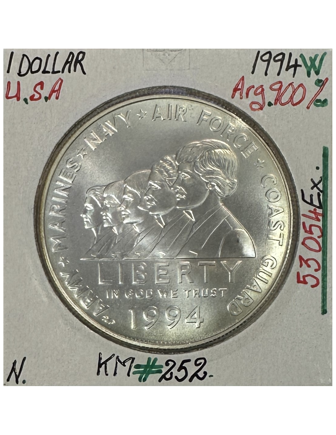 Pièce de monnaie des Etats-Unis de 1 Dollar 1994W en argent