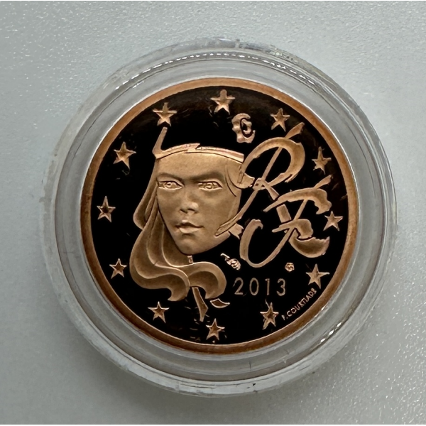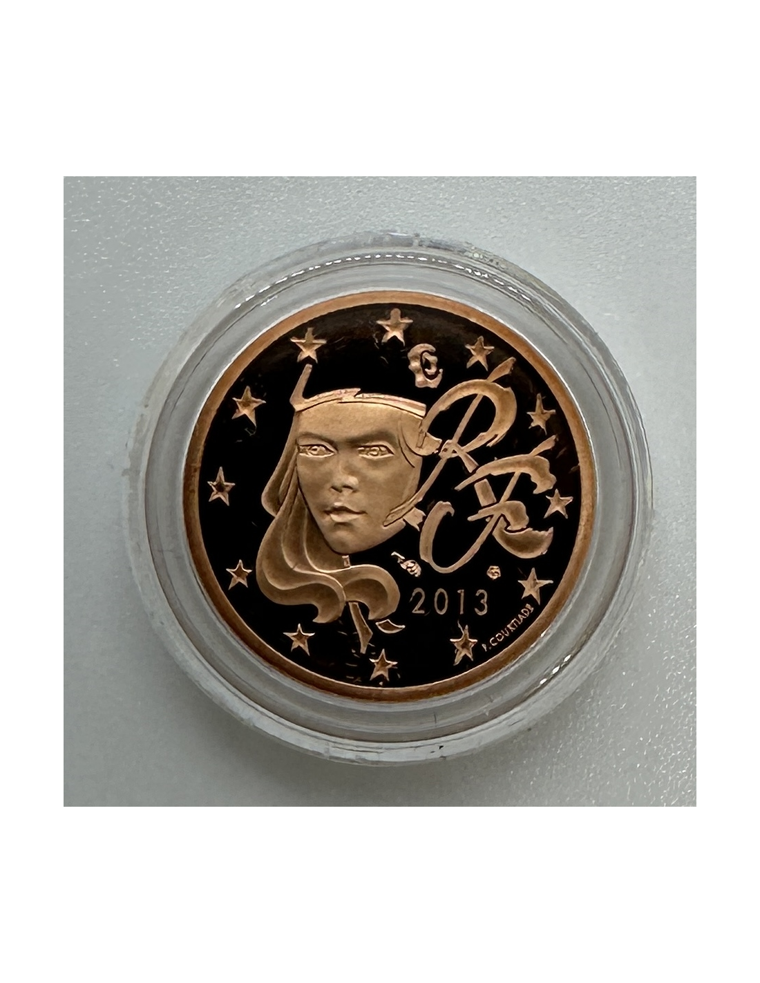 Pièce de 2 Centimes d'Euro 2013 de la France représentant Marianne en qualité Belle Epreuve, présentée sous capsule d'origine et issue du coffret BE