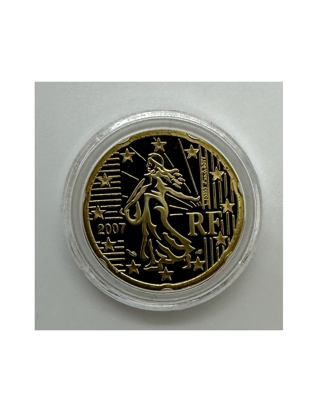 Pièce de 20 Centimes d'Euro 2007 de la France représentant la Semeuse en qualité Belle Epreuve, présentée sous capsule d'origine et issue du coffret BE
