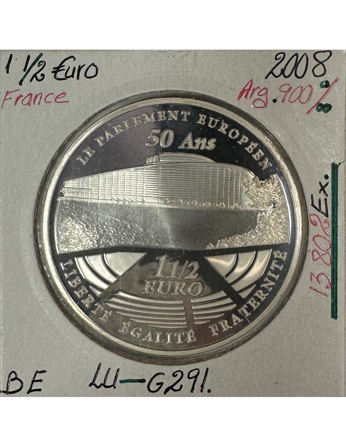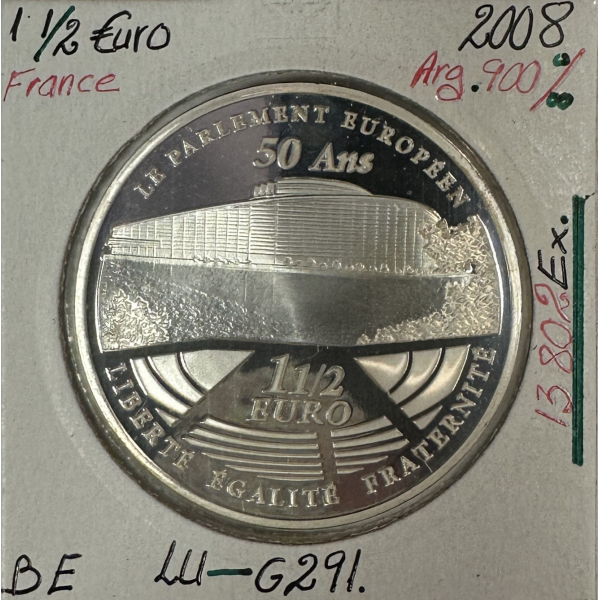 1 Euro 1/2 en Argent issu du Coffret BE (France 2008) émis par la Monnaie de Paris et commémorant le Parlement Européen