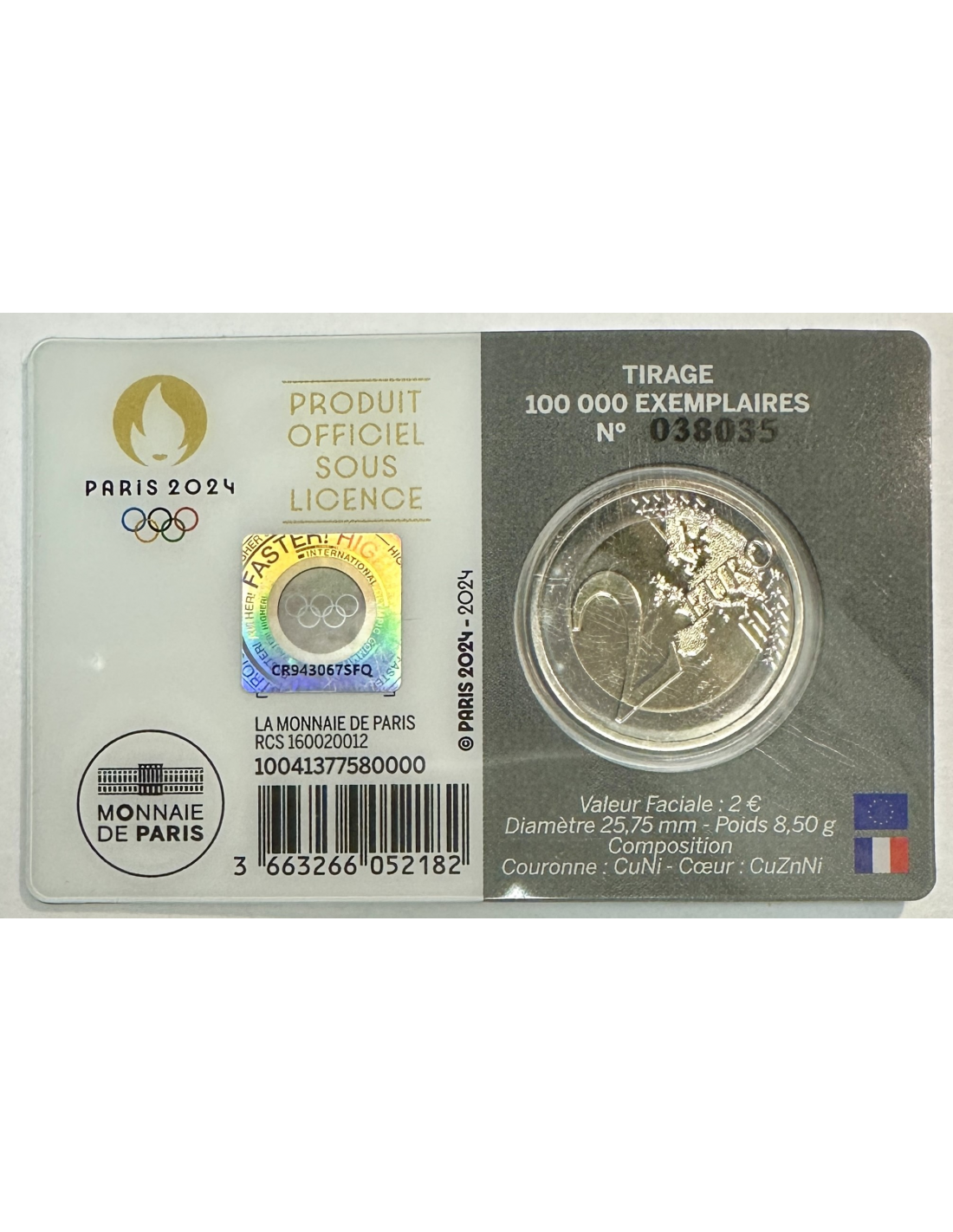 Pièce de 2 Euro commémorative 2024 de la France présentée en Coincard, commémorant les Jeux Olympiques d'été 2024 à Paris