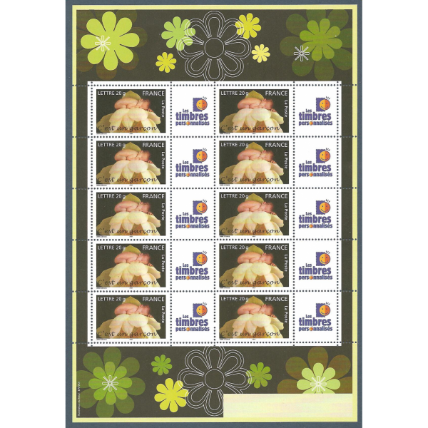 Feuillet Personnalisé neuf premier choix, gomme d'origine sans trace de charnière - 10 timbres