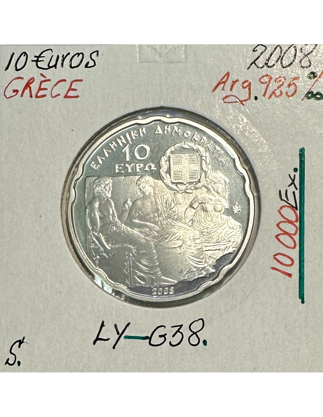 Pièce de 10 Euro en Argent de la Grèce 2003, commémorant les J.O d'été 2004, Lancer de javelot