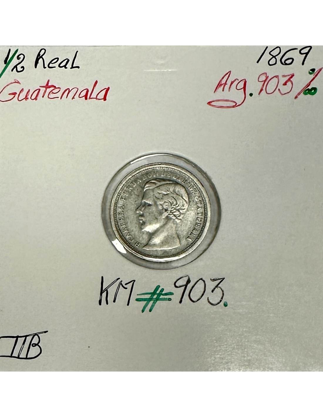 GUATEMALA - 1/2 REAL 1869 - Pièce de Monnaie en Argent // Qualité : TTB
