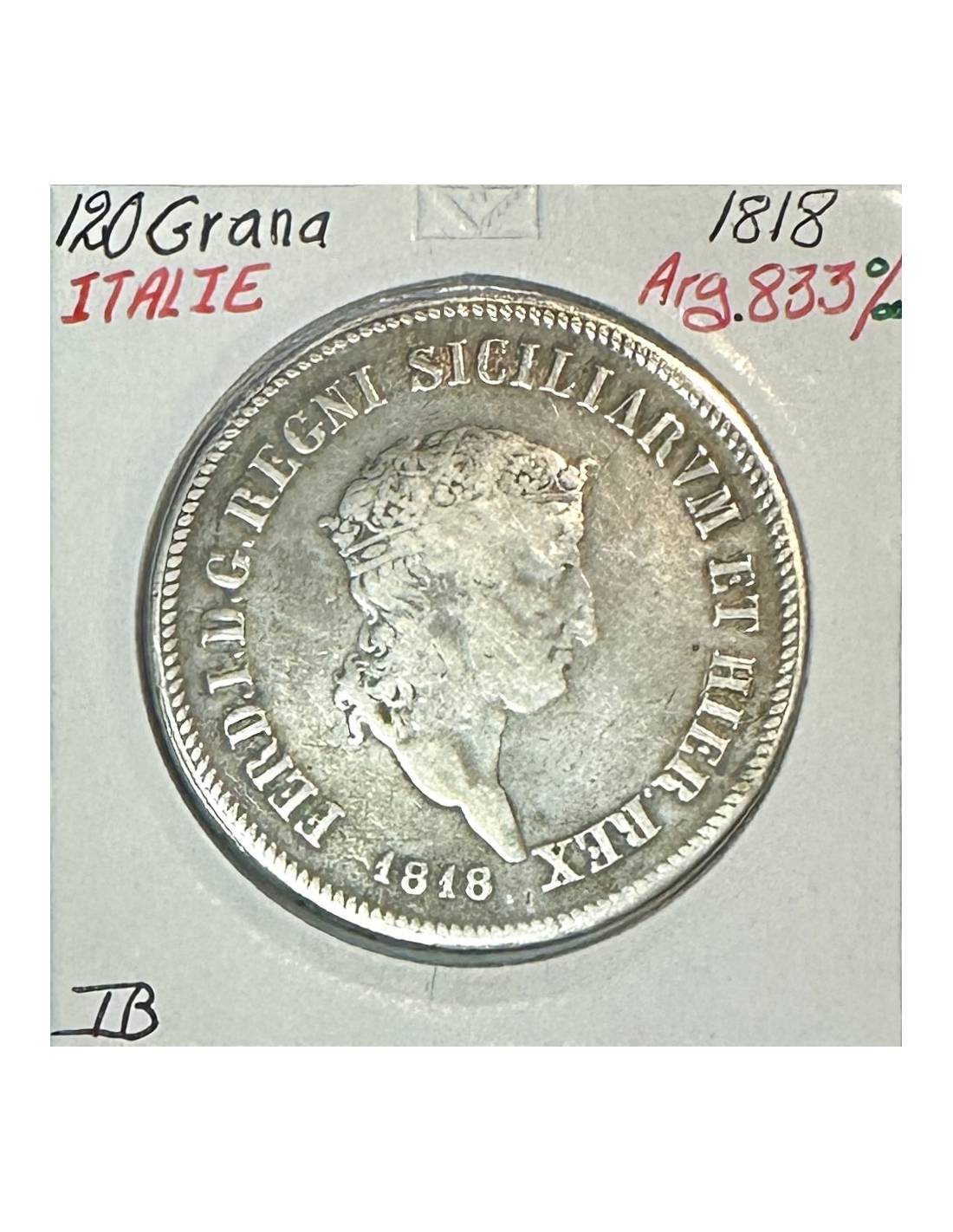 Pièce de monnaie en argent d'Italie de 120 Grana 1818