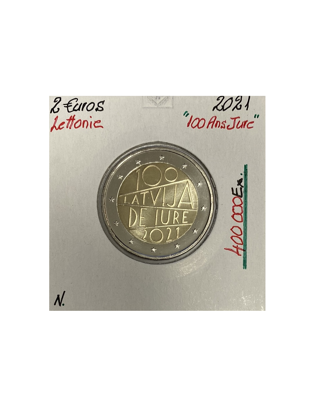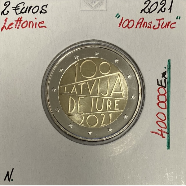Pièce de 2 Euro commémorative de la Lettonie 2021 commémorant le 100ème anniversaire de Jure