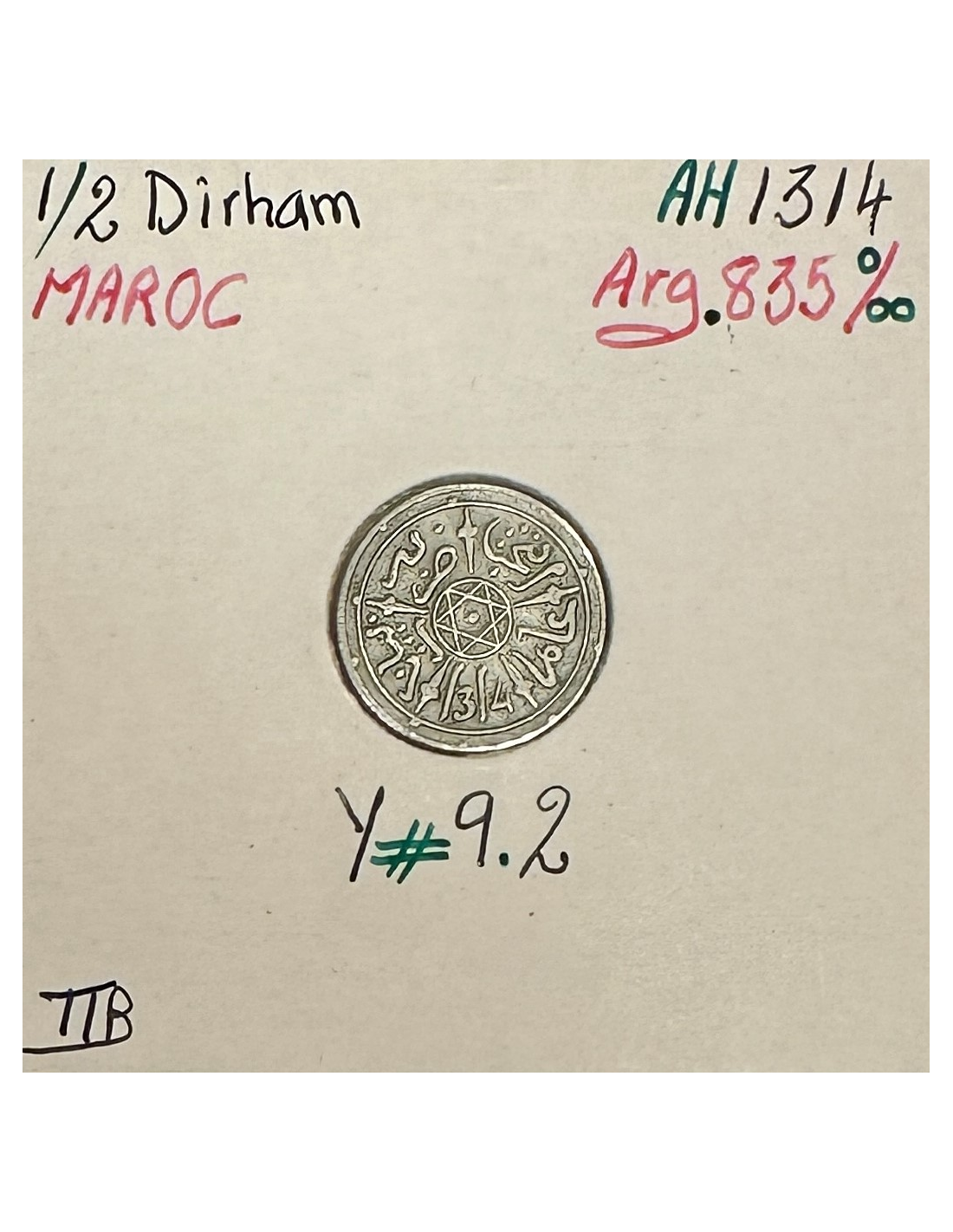 MAROC - 1/2 DIRHAM (AH 1314) - Pièce de Monnaie en Argent // TTB